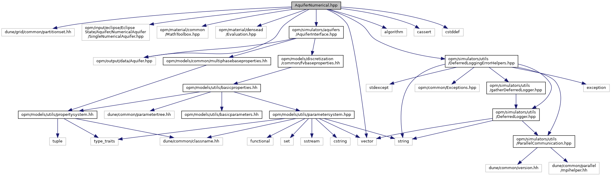 AquiferNumerical.hpp File Reference #include <dune/grid/common/partitionset.hh>#include <opm/input/eclipse/EclipseState/Aquifer/NumericalAquifer/SingleNumericalAquifer.hpp>#include <opm/material/common/MathToolbox.hpp>#include <opm/material/densead/Evaluation.hpp>#include <opm/output/data/Aquifer.hpp>#include <opm/simulators/aquifers/AquiferInterface.hpp>#include <opm/simulators/utils/DeferredLoggingErrorHelpers.hpp>#include <algorithm>#include <cassert>#include <cstddef>#include <vector>