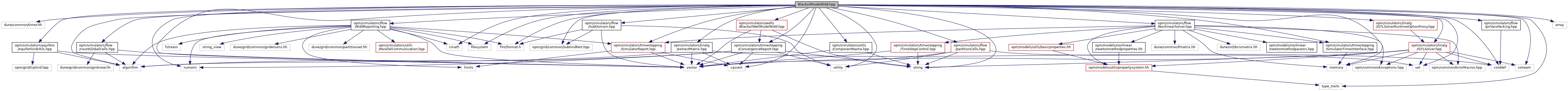 Include dependency graph for BlackoilModelNldd.hpp:
