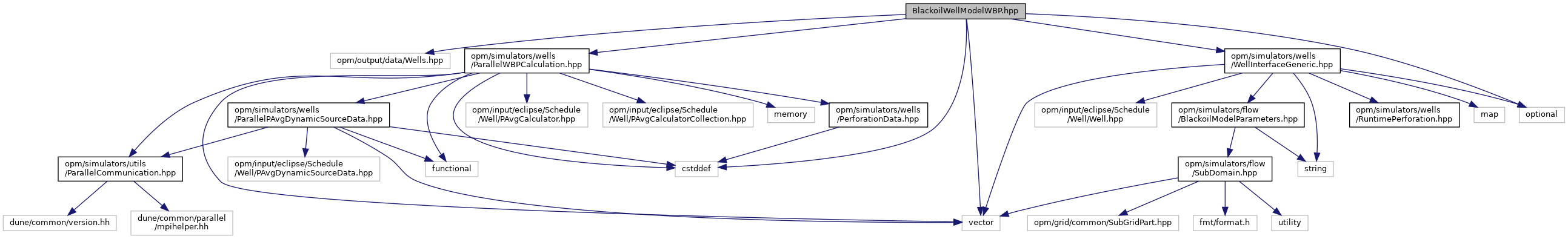 BlackoilWellModelWBP.hpp File Reference #include <opm/output/data/Wells.hpp>#include <opm/simulators/wells/ParallelWBPCalculation.hpp>#include <opm/simulators/wells/WellInterfaceGeneric.hpp>#include <cstddef>#include <optional>#include <vector>