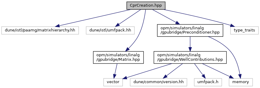 CprCreation.hpp File Reference #include <dune/istl/paamg/matrixhierarchy.hh>#include <dune/istl/umfpack.hh>#include <opm/simulators/linalg/gpubridge/Matrix.hpp>#include <opm/simulators/linalg/gpubridge/Preconditioner.hpp>#include <type_traits>