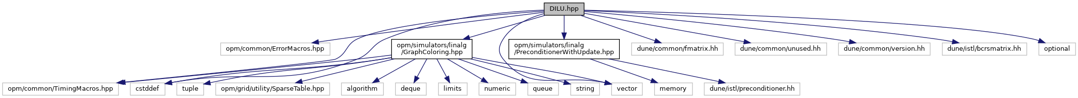 DILU.hpp File Reference #include <opm/common/ErrorMacros.hpp>#include <opm/common/TimingMacros.hpp>#include <opm/simulators/linalg/PreconditionerWithUpdate.hpp>#include <dune/common/fmatrix.hh>#include <dune/common/unused.hh>#include <dune/common/version.hh>#include <dune/istl/bcrsmatrix.hh>#include <opm/simulators/linalg/GraphColoring.hpp>#include <cstddef>#include <optional>#include <vector>