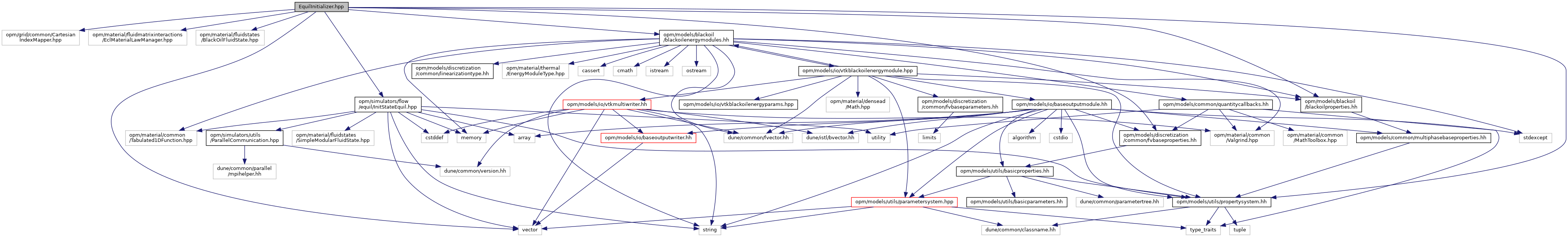 EquilInitializer.hpp File Reference #include <opm/grid/common/CartesianIndexMapper.hpp>#include <opm/material/fluidmatrixinteractions/EclMaterialLawManager.hpp>#include <opm/material/fluidstates/BlackOilFluidState.hpp>#include <opm/models/blackoil/blackoilenergymodules.hh>#include <opm/models/blackoil/blackoilproperties.hh>#include <opm/models/discretization/common/fvbaseproperties.hh>#include <opm/models/utils/propertysystem.hh>#include <opm/simulators/flow/equil/InitStateEquil.hpp>#include <vector>