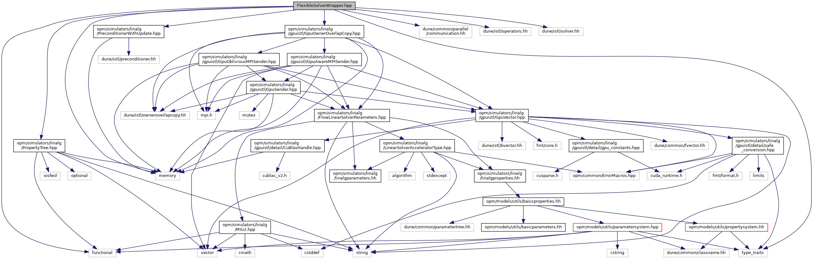 FlexibleSolverWrapper.hpp File Reference #include <functional>#include <memory>#include <type_traits>#include <dune/common/parallel/communication.hh>#include <dune/istl/operators.hh>#include <dune/istl/solver.hh>#include <opm/simulators/linalg/PreconditionerWithUpdate.hpp>#include <opm/simulators/linalg/PropertyTree.hpp>#include <opm/simulators/linalg/gpuistl/GpuOwnerOverlapCopy.hpp>
