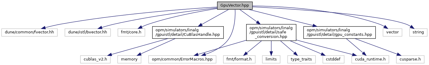 GpuVector.hpp File Reference #include <dune/common/fvector.hh>#include <dune/istl/bvector.hh>#include <fmt/core.h>#include <opm/common/ErrorMacros.hpp>#include <opm/simulators/linalg/gpuistl/detail/CuBlasHandle.hpp>#include <opm/simulators/linalg/gpuistl/detail/safe_conversion.hpp>#include <opm/simulators/linalg/gpuistl/detail/gpu_constants.hpp>#include <vector>#include <string>