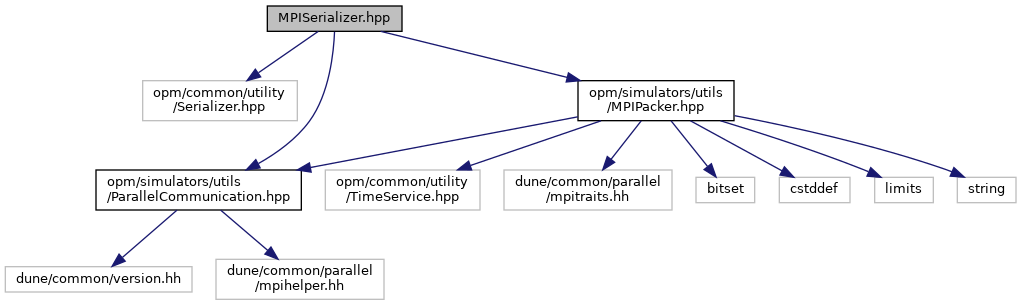 MPISerializer.hpp File Reference #include <opm/common/utility/Serializer.hpp>#include <opm/simulators/utils/MPIPacker.hpp>#include <opm/simulators/utils/ParallelCommunication.hpp>