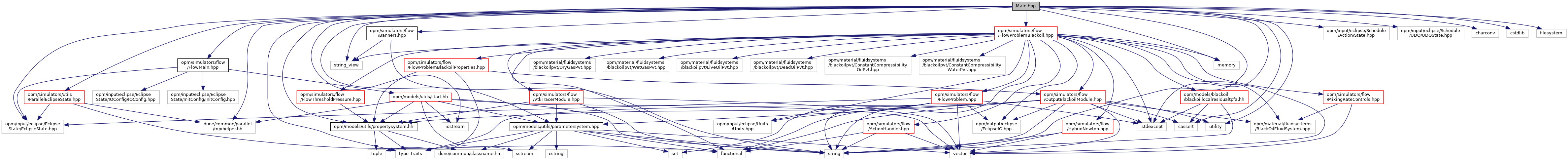 Main.hpp File Reference #include <opm/input/eclipse/EclipseState/EclipseState.hpp>#include <opm/input/eclipse/Schedule/Action/State.hpp>#include <opm/input/eclipse/Schedule/UDQ/UDQState.hpp>#include <opm/models/utils/propertysystem.hh>#include <opm/models/utils/parametersystem.hpp>#include <opm/simulators/flow/Banners.hpp>#include <opm/simulators/flow/FlowMain.hpp>#include <opm/simulators/flow/FlowProblemBlackoil.hpp>#include <dune/common/parallel/mpihelper.hh>#include <opm/simulators/utils/ParallelEclipseState.hpp>#include <cassert>#include <charconv>#include <cstdlib>#include <filesystem>#include <iostream>#include <memory>#include <stdexcept>#include <string>#include <string_view>#include <type_traits>#include <utility>
