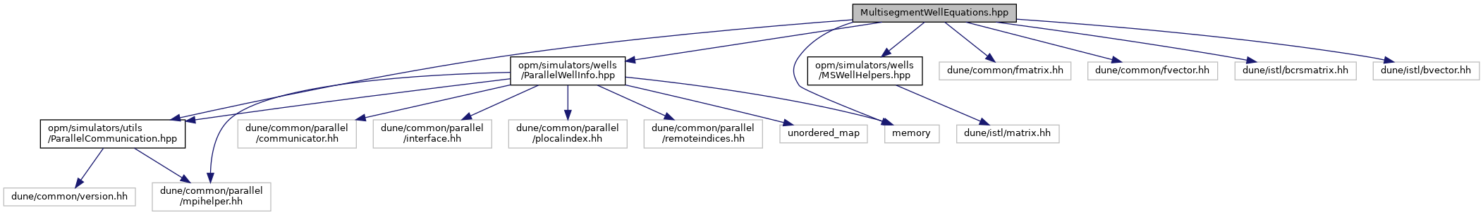 MultisegmentWellEquations.hpp File Reference #include <opm/simulators/utils/ParallelCommunication.hpp>#include <opm/simulators/wells/ParallelWellInfo.hpp>#include <opm/simulators/wells/MSWellHelpers.hpp>#include <dune/common/fmatrix.hh>#include <dune/common/fvector.hh>#include <dune/istl/bcrsmatrix.hh>#include <dune/istl/bvector.hh>#include <memory>