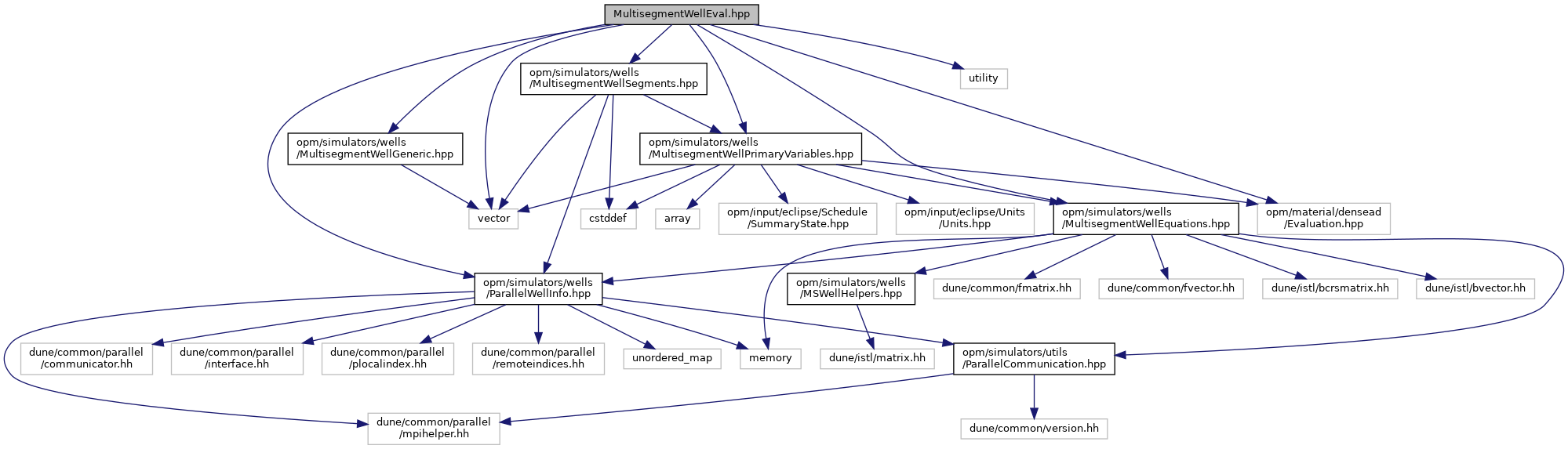 MultisegmentWellEval.hpp File Reference #include <opm/simulators/wells/MultisegmentWellEquations.hpp>#include <opm/simulators/wells/MultisegmentWellGeneric.hpp>#include <opm/simulators/wells/MultisegmentWellPrimaryVariables.hpp>#include <opm/simulators/wells/MultisegmentWellSegments.hpp>#include <opm/simulators/wells/ParallelWellInfo.hpp>#include <opm/material/densead/Evaluation.hpp>#include <utility>#include <vector>