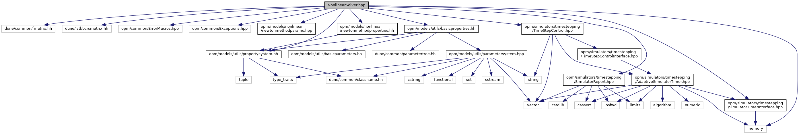 NonlinearSolver.hpp File Reference #include <dune/common/fmatrix.hh>#include <dune/istl/bcrsmatrix.hh>#include <opm/common/ErrorMacros.hpp>#include <opm/common/Exceptions.hpp>#include <opm/models/nonlinear/newtonmethodparams.hpp>#include <opm/models/nonlinear/newtonmethodproperties.hh>#include <opm/models/utils/propertysystem.hh>#include <opm/models/utils/basicproperties.hh>#include <opm/simulators/timestepping/SimulatorReport.hpp>#include <opm/simulators/timestepping/SimulatorTimerInterface.hpp>#include <opm/simulators/timestepping/TimeStepControl.hpp>#include <memory>