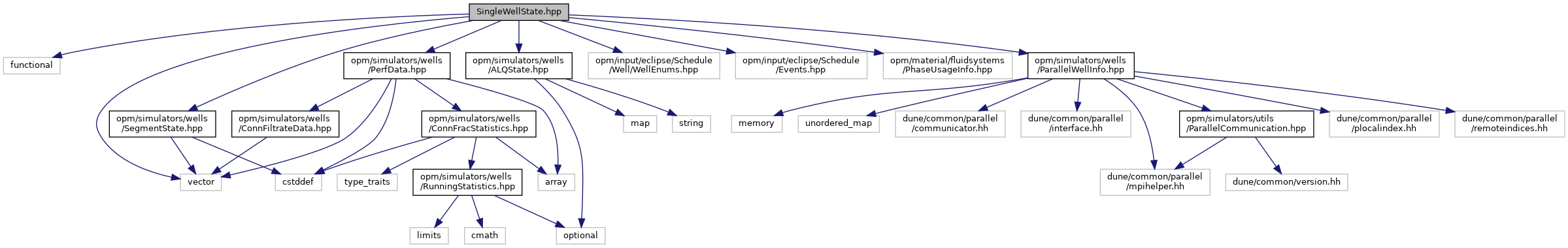 SingleWellState.hpp File Reference #include <functional>#include <vector>#include <opm/input/eclipse/Schedule/Well/WellEnums.hpp>#include <opm/input/eclipse/Schedule/Events.hpp>#include <opm/material/fluidsystems/PhaseUsageInfo.hpp>#include <opm/simulators/wells/SegmentState.hpp>#include <opm/simulators/wells/PerfData.hpp>#include <opm/simulators/wells/ParallelWellInfo.hpp>#include <opm/simulators/wells/ALQState.hpp>