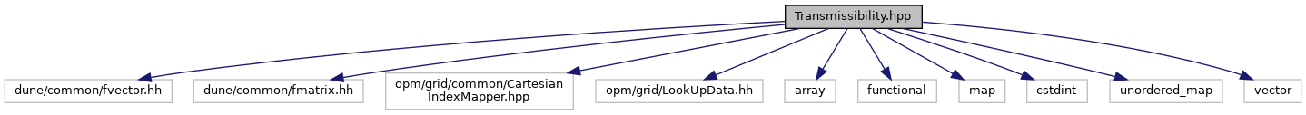 Transmissibility.hpp File Reference #include <dune/common/fvector.hh>#include <dune/common/fmatrix.hh>#include <opm/grid/common/CartesianIndexMapper.hpp>#include <opm/grid/LookUpData.hh>#include <array>#include <functional>#include <map>#include <cstdint>#include <unordered_map>#include <vector>