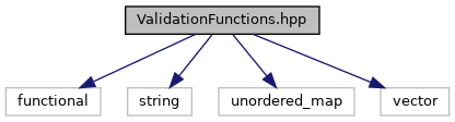 ValidationFunctions.hpp File Reference #include <functional>#include <string>#include <unordered_map>#include <vector>