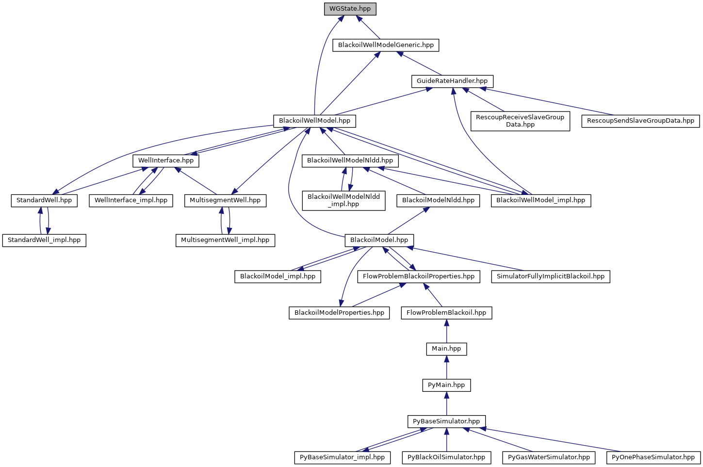 WGState.hpp File Reference #include <opm/simulators/wells/WellState.hpp>#include <opm/simulators/wells/GroupState.hpp>#include <opm/input/eclipse/Schedule/Well/WellTestState.hpp>#include <memory>