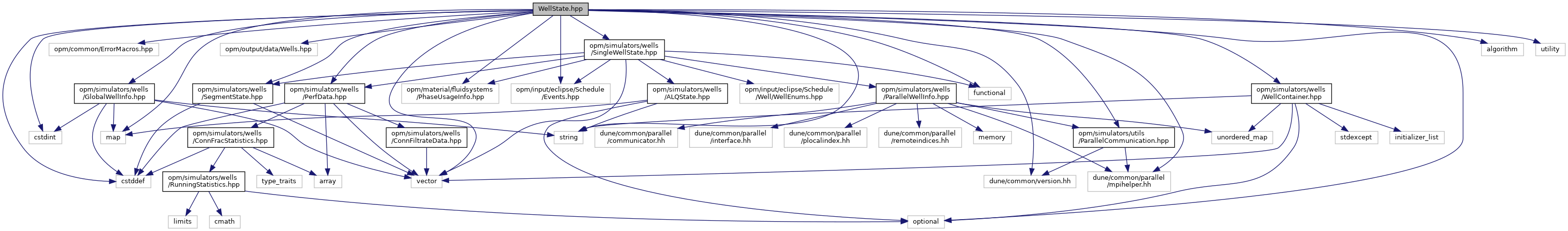 Include dependency graph for WellState.hpp: