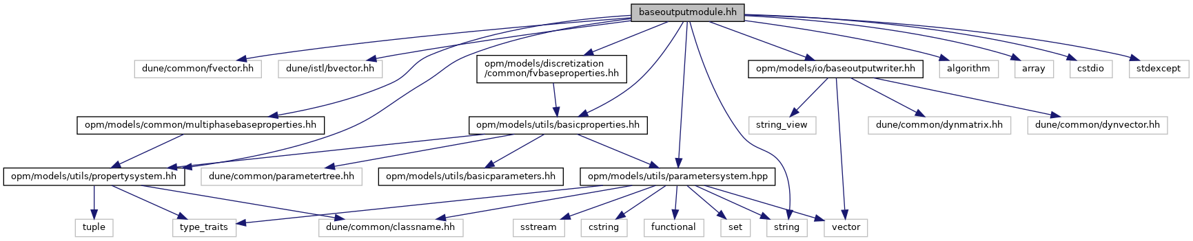 baseoutputmodule.hh File Reference #include <dune/common/fvector.hh>#include <dune/istl/bvector.hh>#include <opm/models/common/multiphasebaseproperties.hh>#include <opm/models/discretization/common/fvbaseproperties.hh>#include <opm/models/io/baseoutputwriter.hh>#include <opm/models/utils/basicproperties.hh>#include <opm/models/utils/parametersystem.hpp>#include <opm/models/utils/propertysystem.hh>#include <algorithm>#include <array>#include <cstdio>#include <stdexcept>#include <string>