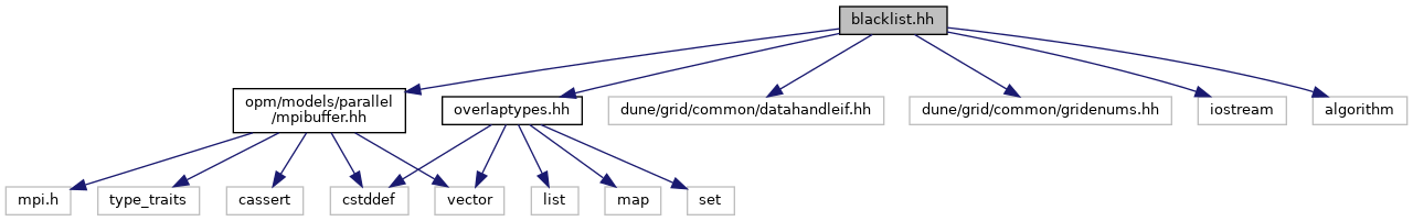blacklist.hh File Reference #include "overlaptypes.hh"#include <opm/models/parallel/mpibuffer.hh>#include <dune/grid/common/datahandleif.hh>#include <dune/grid/common/gridenums.hh>#include <iostream>#include <algorithm>