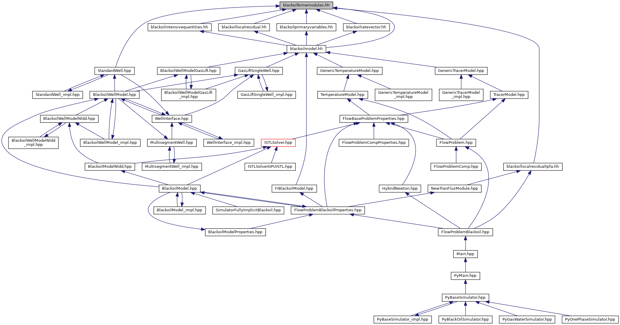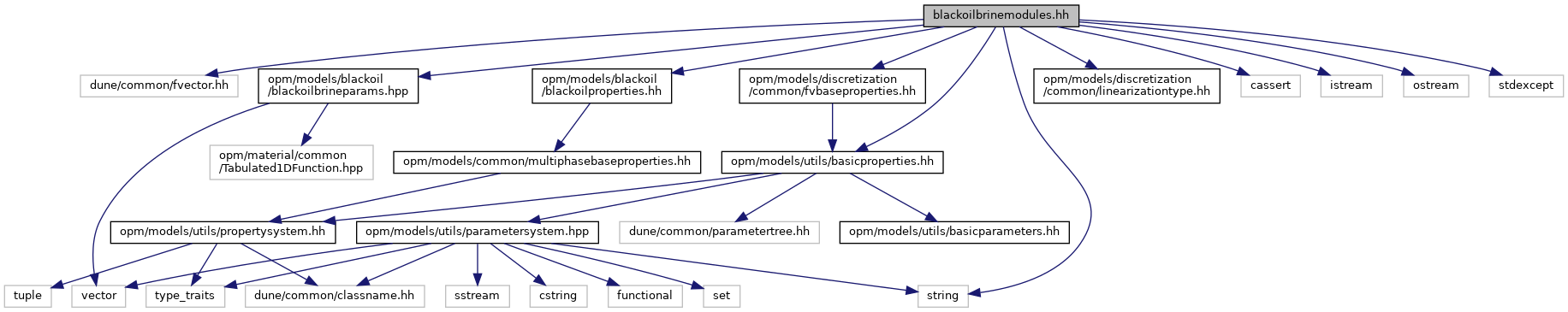 blackoilbrinemodules.hh File Reference Contains the classes required to extend the black-oil model by brine. More... #include <dune/common/fvector.hh>#include <opm/models/blackoil/blackoilbrineparams.hpp>#include <opm/models/blackoil/blackoilproperties.hh>#include <opm/models/discretization/common/fvbaseproperties.hh>#include <opm/models/discretization/common/linearizationtype.hh>#include <opm/models/utils/basicproperties.hh>#include <cassert>#include <istream>#include <ostream>#include <stdexcept>#include <string>