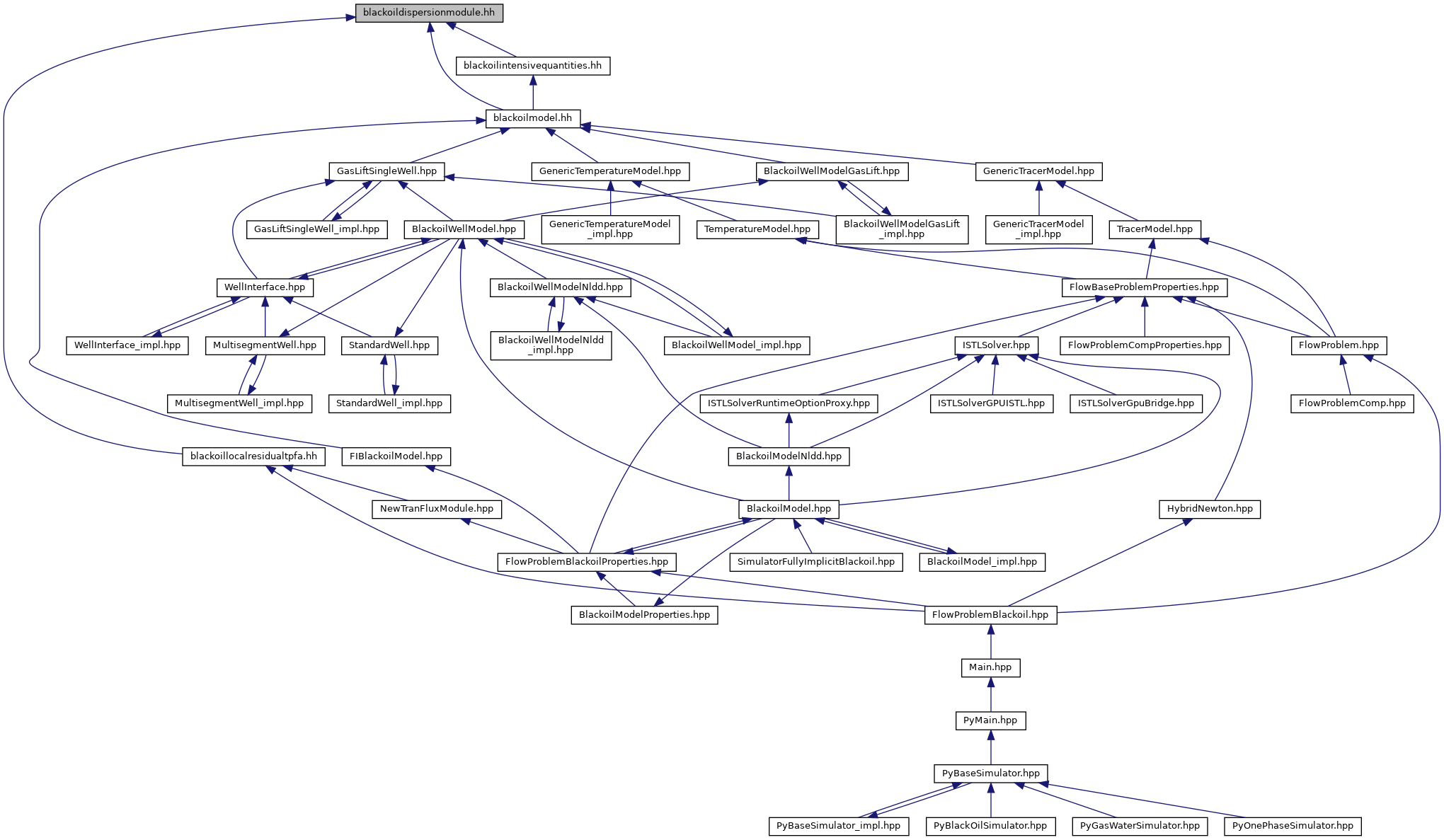 Include dependency graph for blackoildispersionmodule.hh: