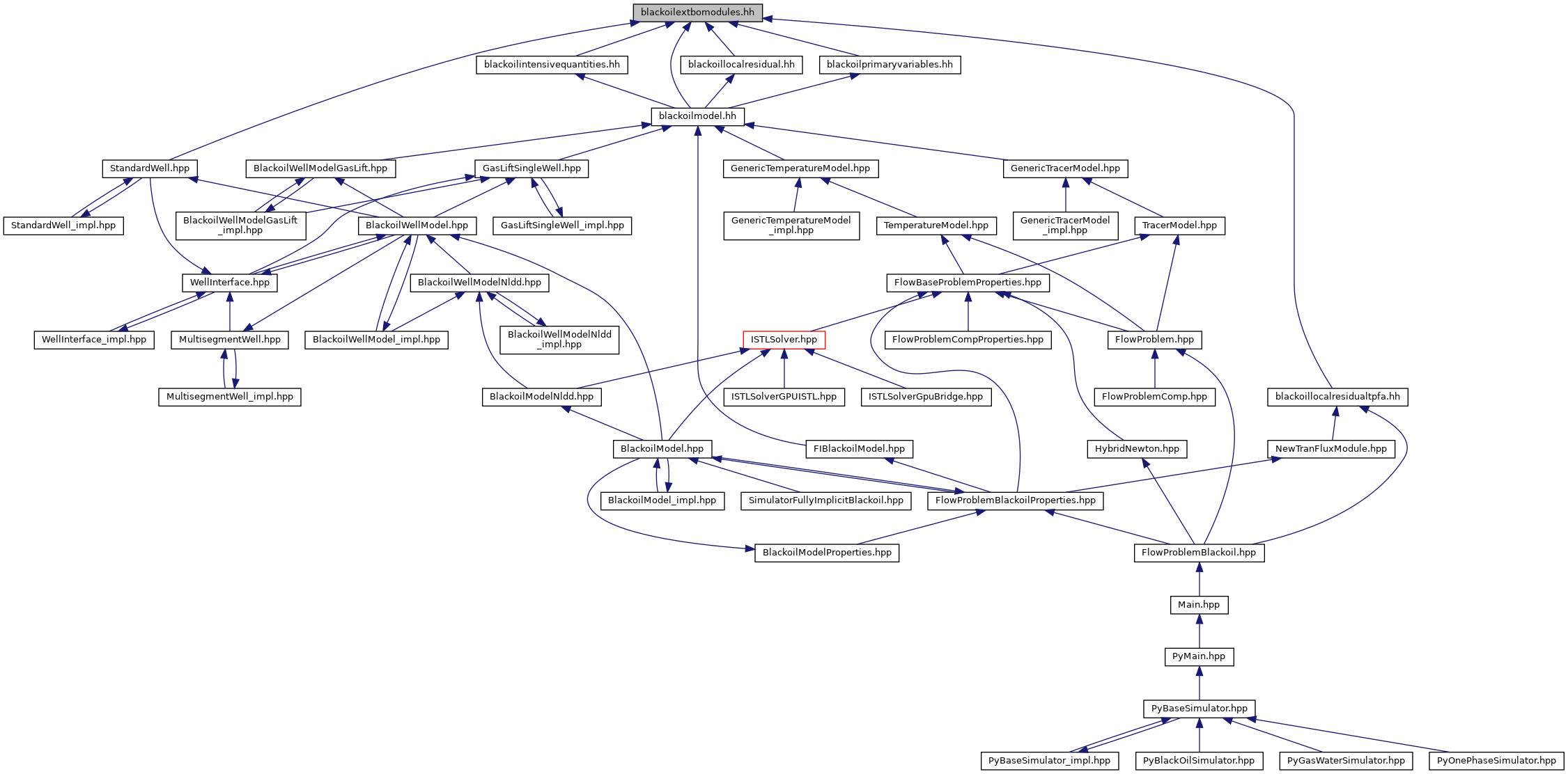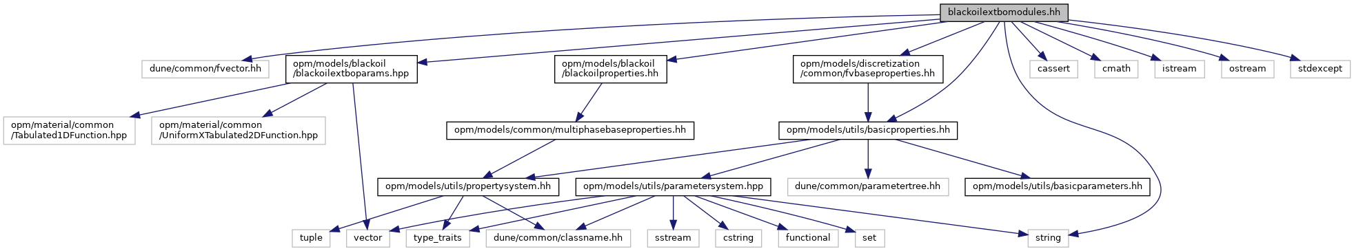 blackoilextbomodules.hh File Reference Contains the classes required to extend the black-oil model by solvent component. For details, refer: [*] T.H. Sandve, O. Sævareid and I. Aavatsmark: “Improved Extended Blackoil Formulation for CO2 EOR Simulations.” in ECMOR XVII – The 17th European Conference on the Mathematics of Oil Recovery, September 2020. More... #include <dune/common/fvector.hh>#include <opm/models/blackoil/blackoilextboparams.hpp>#include <opm/models/blackoil/blackoilproperties.hh>#include <opm/models/discretization/common/fvbaseproperties.hh>#include <opm/models/utils/basicproperties.hh>#include <cassert>#include <cmath>#include <istream>#include <ostream>#include <stdexcept>#include <string>