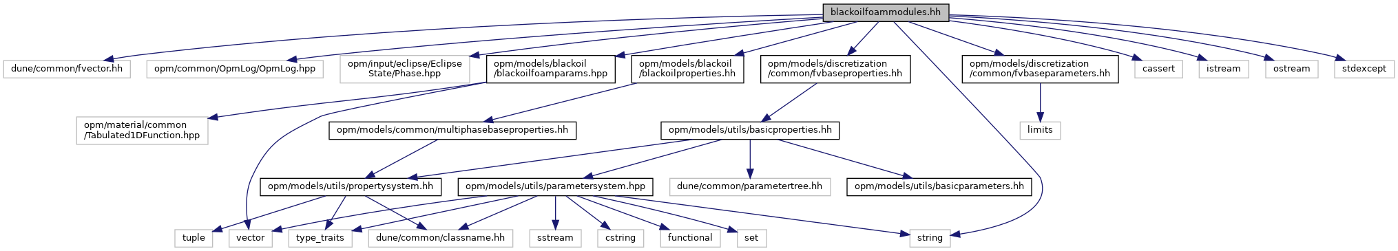 blackoilfoammodules.hh File Reference Contains the classes required to extend the black-oil model to include the effects of foam. More... #include <dune/common/fvector.hh>#include <opm/common/OpmLog/OpmLog.hpp>#include <opm/input/eclipse/EclipseState/Phase.hpp>#include <opm/models/blackoil/blackoilfoamparams.hpp>#include <opm/models/blackoil/blackoilproperties.hh>#include <opm/models/discretization/common/fvbaseparameters.hh>#include <opm/models/discretization/common/fvbaseproperties.hh>#include <cassert>#include <istream>#include <ostream>#include <stdexcept>#include <string>