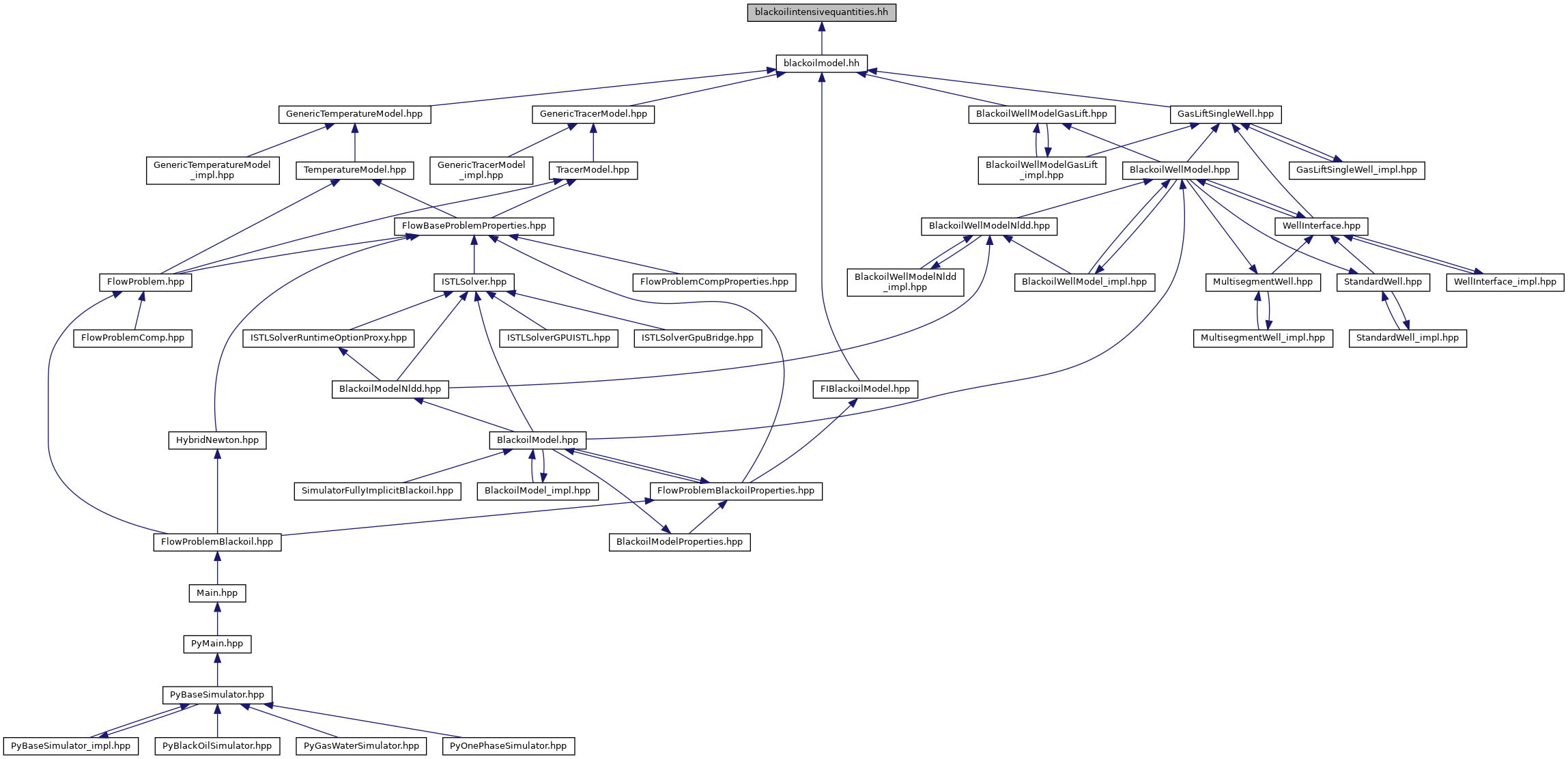 blackoilintensivequantities.hh File Reference #include <dune/common/fmatrix.hh>#include <opm/common/TimingMacros.hpp>#include <opm/input/eclipse/EclipseState/Grid/FaceDir.hpp>#include <opm/material/fluidstates/BlackOilFluidState.hpp>#include <opm/material/common/Valgrind.hpp>#include <opm/models/blackoil/blackoilbioeffectsmodules.hh>#include <opm/models/blackoil/blackoilbrinemodules.hh>#include <opm/models/blackoil/blackoilconvectivemixingmodule.hh>#include <opm/models/blackoil/blackoildiffusionmodule.hh>#include <opm/models/blackoil/blackoildispersionmodule.hh>#include <opm/models/blackoil/blackoilenergymodules.hh>#include <opm/models/blackoil/blackoilextbomodules.hh>#include <opm/models/blackoil/blackoilfoammodules.hh>#include <opm/models/blackoil/blackoilpolymermodules.hh>#include <opm/models/blackoil/blackoilproperties.hh>#include <opm/models/blackoil/blackoilsolventmodules.hh>#include <opm/models/common/directionalmobility.hh>#include <opm/utility/CopyablePtr.hpp>#include <array>#include <cassert>#include <cstring>#include <stdexcept>#include <utility>#include <vector>