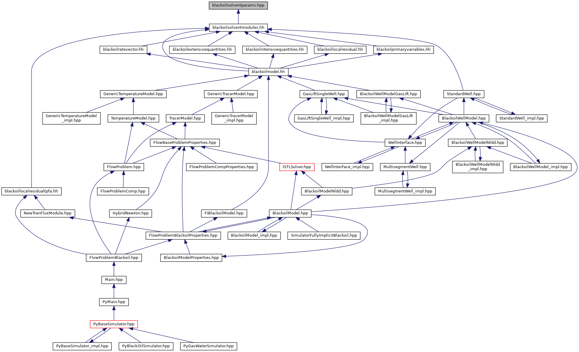 blackoilsolventparams.hpp File Reference Contains the parameters required to extend the black-oil model by solvents. More... #include <opm/material/fluidsystems/blackoilpvt/SolventPvt.hpp>#include <opm/material/fluidsystems/blackoilpvt/Co2GasPvt.hpp>#include <opm/material/fluidsystems/blackoilpvt/H2GasPvt.hpp>#include <opm/material/fluidsystems/blackoilpvt/BrineCo2Pvt.hpp>#include <opm/material/fluidsystems/blackoilpvt/BrineH2Pvt.hpp>#include <opm/material/common/Tabulated1DFunction.hpp>