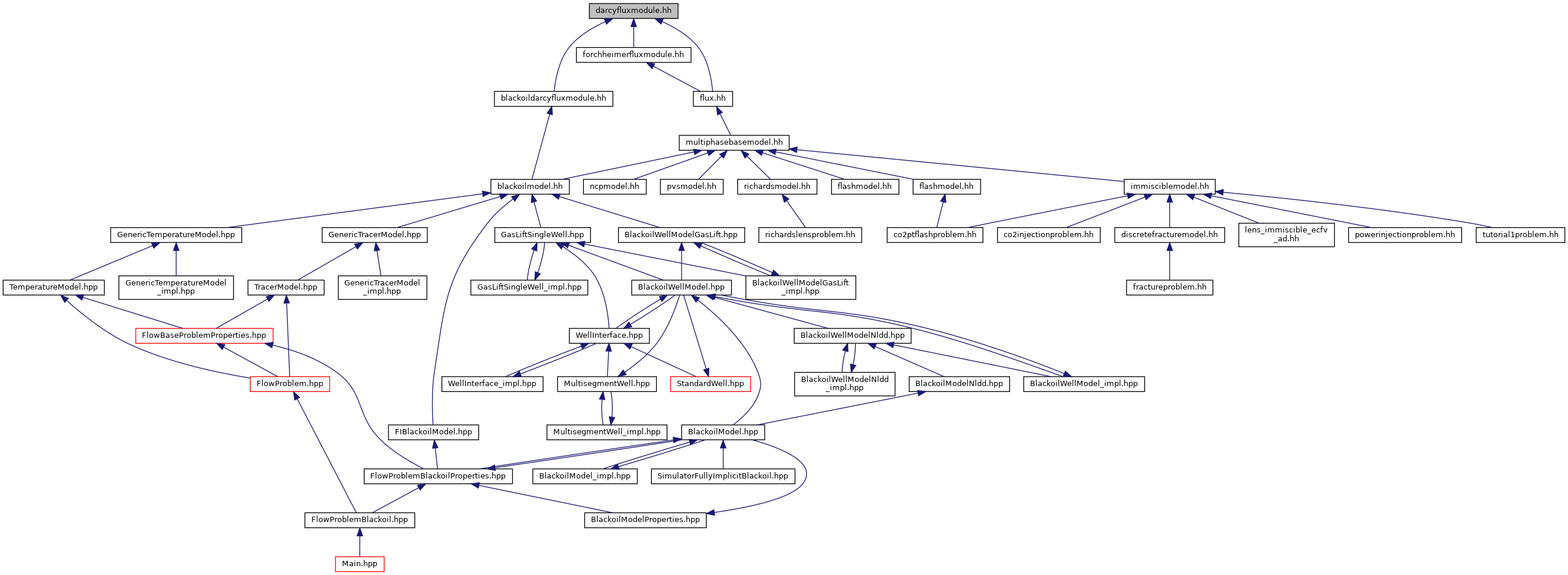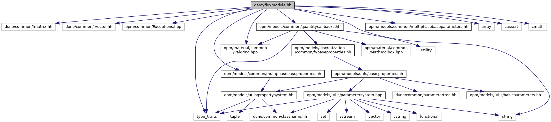darcyfluxmodule.hh File Reference This file contains the necessary classes to calculate the volumetric fluxes out of a pressure potential gradient using the Darcy relation. More... #include <dune/common/fmatrix.hh>#include <dune/common/fvector.hh>#include <opm/common/Exceptions.hpp>#include <opm/material/common/Valgrind.hpp>#include <opm/models/common/multiphasebaseparameters.hh>#include <opm/models/common/multiphasebaseproperties.hh>#include <opm/models/common/quantitycallbacks.hh>#include <array>#include <cassert>#include <cmath>#include <string>#include <type_traits>