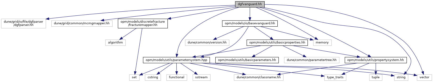 dgfvanguard.hh File Reference #include <dune/grid/io/file/dgfparser/dgfparser.hh>#include <dune/grid/common/mcmgmapper.hh>#include <opm/models/discretefracture/fracturemapper.hh>#include <opm/models/io/basevanguard.hh>#include <opm/models/utils/propertysystem.hh>#include <opm/models/utils/parametersystem.hpp>#include <memory>#include <string>#include <vector>