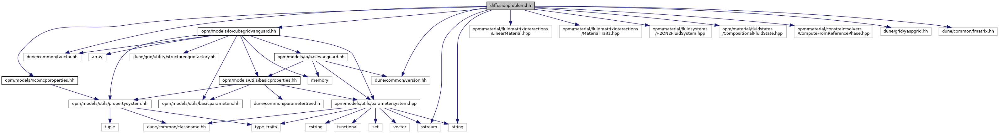 diffusionproblem.hh File Reference #include <opm/models/ncp/ncpproperties.hh>#include <opm/models/io/cubegridvanguard.hh>#include <opm/material/fluidmatrixinteractions/LinearMaterial.hpp>#include <opm/material/fluidmatrixinteractions/MaterialTraits.hpp>#include <opm/material/fluidsystems/H2ON2FluidSystem.hpp>#include <opm/material/fluidstates/CompositionalFluidState.hpp>#include <opm/material/constraintsolvers/ComputeFromReferencePhase.hpp>#include <dune/grid/yaspgrid.hh>#include <dune/common/version.hh>#include <dune/common/fvector.hh>#include <dune/common/fmatrix.hh>#include <sstream>#include <string>