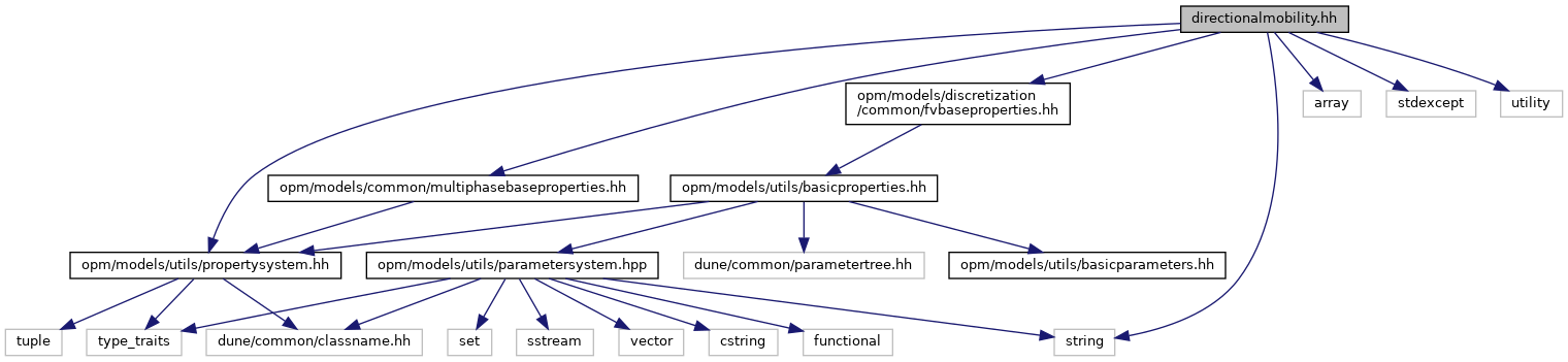 directionalmobility.hh File Reference This file contains definitions related to directional mobilities. More... #include <opm/models/common/multiphasebaseproperties.hh>#include <opm/models/discretization/common/fvbaseproperties.hh>#include <opm/models/utils/propertysystem.hh>#include <array>#include <stdexcept>#include <string>#include <utility>