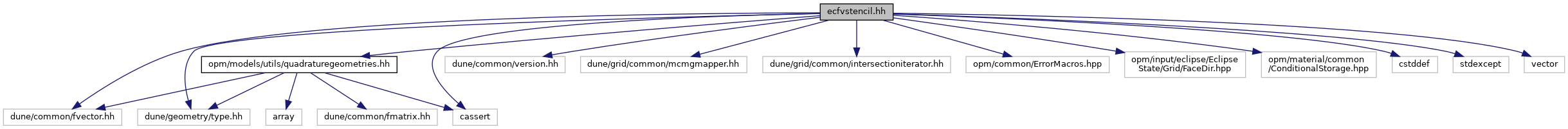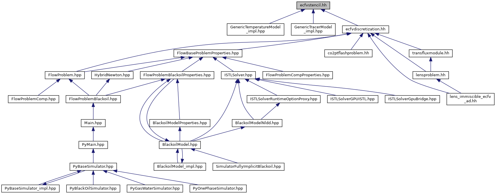 ecfvstencil.hh File Reference #include <dune/common/fvector.hh>#include <dune/common/version.hh>#include <dune/geometry/type.hh>#include <dune/grid/common/mcmgmapper.hh>#include <dune/grid/common/intersectioniterator.hh>#include <opm/common/ErrorMacros.hpp>#include <opm/input/eclipse/EclipseState/Grid/FaceDir.hpp>#include <opm/material/common/ConditionalStorage.hpp>#include <opm/models/utils/quadraturegeometries.hh>#include <cassert>#include <cstddef>#include <stdexcept>#include <vector>