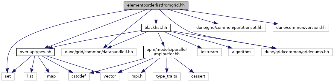 elementborderlistfromgrid.hh File Reference #include "overlaptypes.hh"#include "blacklist.hh"#include <dune/grid/common/datahandleif.hh>#include <dune/grid/common/gridenums.hh>#include <dune/grid/common/partitionset.hh>#include <dune/common/version.hh>#include <set>