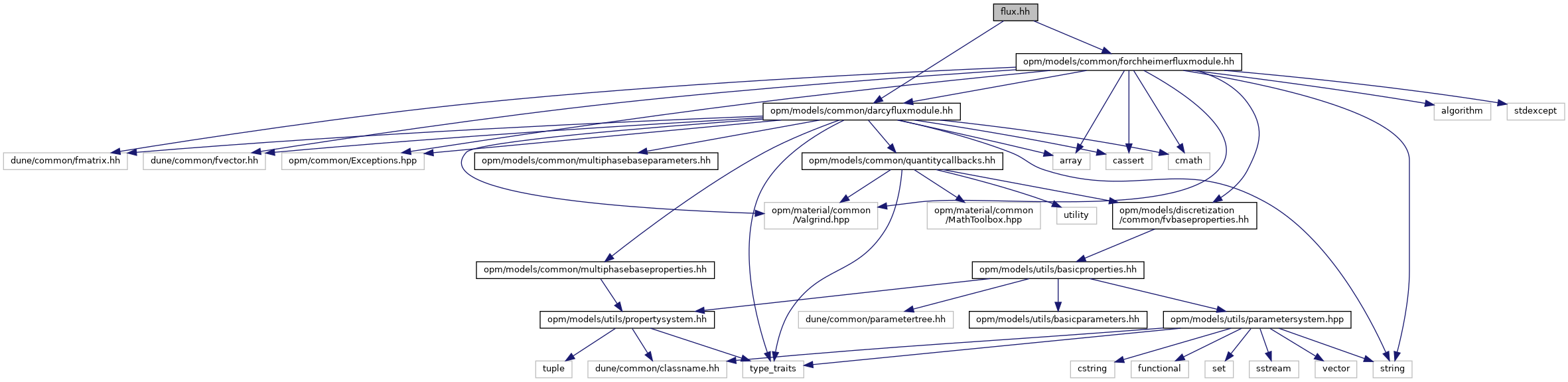 flux.hh File Reference This file contains the necessary classes to calculate the velocity out of a pressure potential gradient. More... #include <opm/models/common/darcyfluxmodule.hh>#include <opm/models/common/forchheimerfluxmodule.hh>