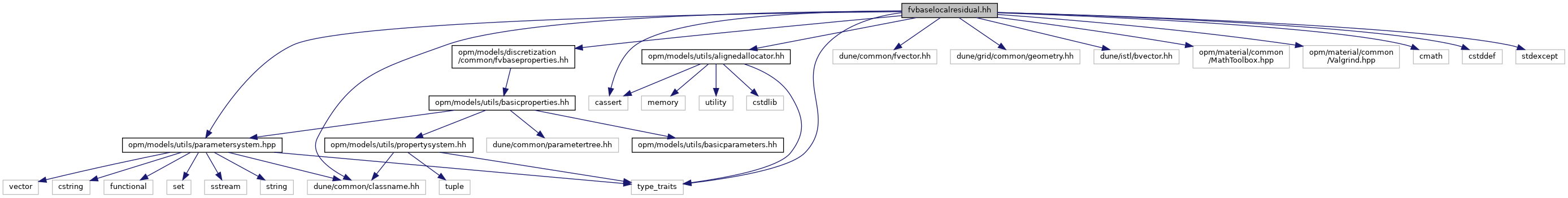 fvbaselocalresidual.hh File Reference #include <dune/common/classname.hh>#include <dune/common/fvector.hh>#include <dune/grid/common/geometry.hh>#include <dune/istl/bvector.hh>#include <opm/material/common/MathToolbox.hpp>#include <opm/material/common/Valgrind.hpp>#include <opm/models/discretization/common/fvbaseproperties.hh>#include <opm/models/utils/alignedallocator.hh>#include <opm/models/utils/parametersystem.hpp>#include <cassert>#include <cmath>#include <cstddef>#include <stdexcept>#include <type_traits>
