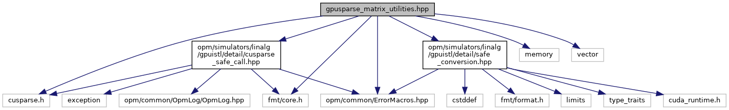Include dependency graph for gpusparse_matrix_utilities.hpp: