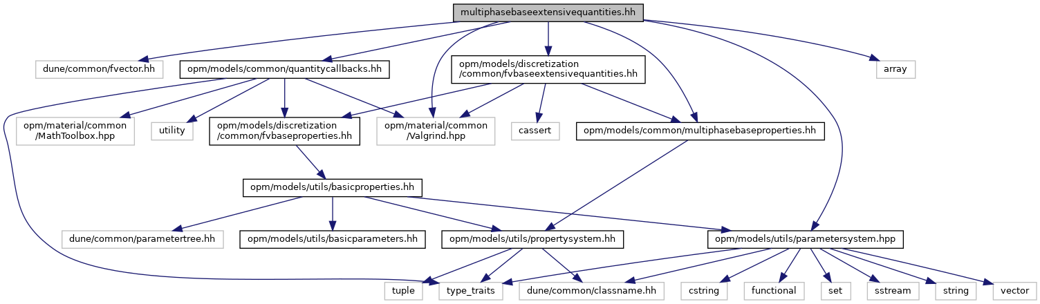 multiphasebaseextensivequantities.hh File Reference #include <dune/common/fvector.hh>#include <opm/material/common/Valgrind.hpp>#include <opm/models/common/multiphasebaseproperties.hh>#include <opm/models/common/quantitycallbacks.hh>#include <opm/models/discretization/common/fvbaseextensivequantities.hh>#include <opm/models/utils/parametersystem.hpp>#include <array>