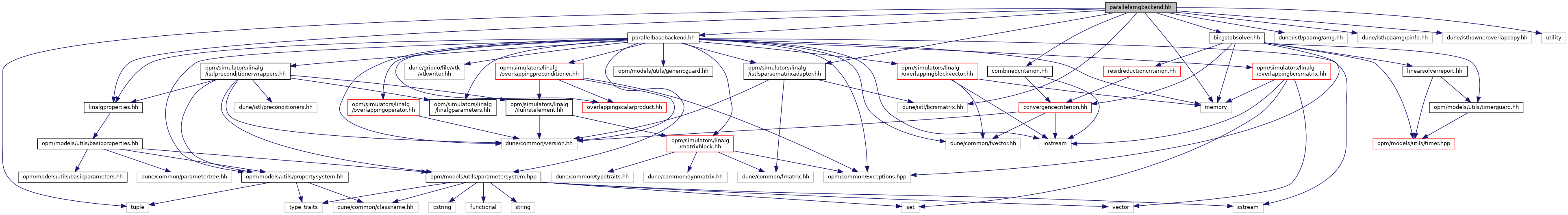 parallelamgbackend.hh File Reference #include "linalgproperties.hh"#include "parallelbasebackend.hh"#include "bicgstabsolver.hh"#include "combinedcriterion.hh"#include "istlsparsematrixadapter.hh"#include <dune/istl/bcrsmatrix.hh>#include <dune/istl/paamg/amg.hh>#include <dune/istl/paamg/pinfo.hh>#include <dune/istl/owneroverlapcopy.hh>#include <memory>#include <tuple>#include <utility>