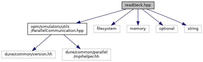| void | Opm::readDeck (Parallel::Communication comm, const std::string &deckFilename, std::shared_ptr< EclipseState > &eclipseState, std::shared_ptr< Schedule > &schedule, std::unique_ptr< UDQState > &udqState, std::unique_ptr< Action::State > &actionState, std::unique_ptr< WellTestState > &wtestState, std::shared_ptr< SummaryConfig > &summaryConfig, std::shared_ptr< Python > python, const std::string &parsingStrictness, const std::string &actionParsingStrictness, const std::string &inputSkipMode, bool initFromRestart, bool checkDeck, bool keepKeywords, const std::optional< int > &outputInterval, bool slaveMode) |