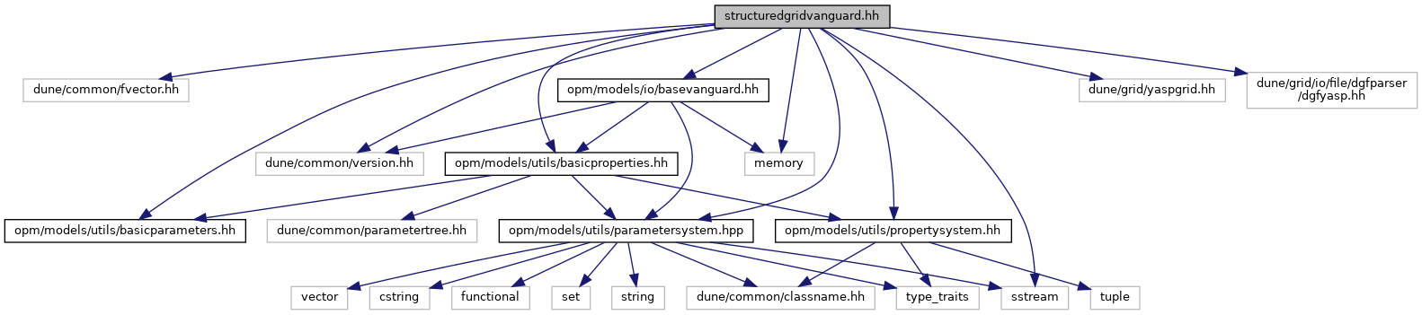 structuredgridvanguard.hh File Reference #include <dune/common/fvector.hh>#include <dune/common/version.hh>#include <dune/grid/yaspgrid.hh>#include <dune/grid/io/file/dgfparser/dgfyasp.hh>#include <opm/models/io/basevanguard.hh>#include <opm/models/utils/basicparameters.hh>#include <opm/models/utils/basicproperties.hh>#include <opm/models/utils/parametersystem.hpp>#include <opm/models/utils/propertysystem.hh>#include <memory>#include <sstream>