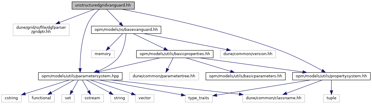 unstructuredgridvanguard.hh File Reference #include <dune/grid/io/file/dgfparser/gridptr.hh>#include <opm/models/io/basevanguard.hh>#include <opm/models/utils/parametersystem.hpp>#include <opm/models/utils/propertysystem.hh>